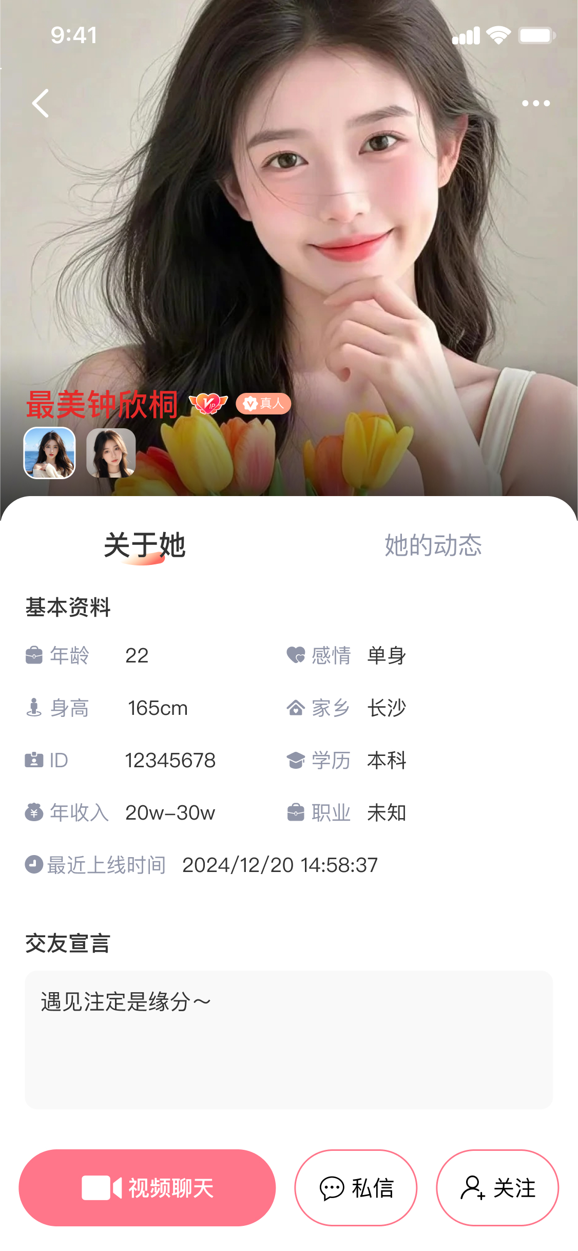 快速查看资料 一键进入对方个人主页了解对方的详情,确保交流真实可靠