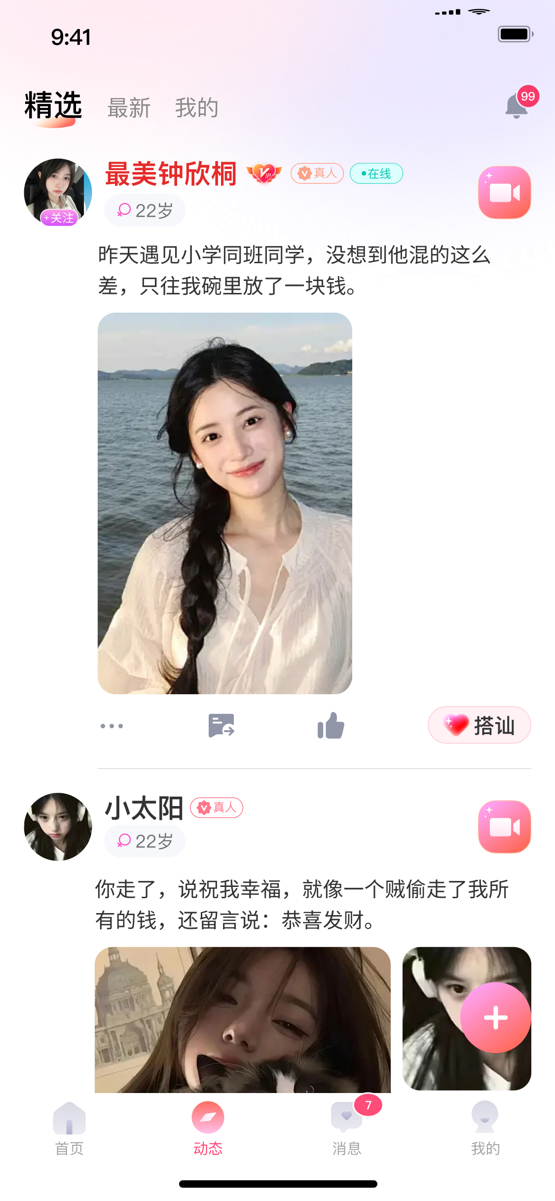炫彩的动态分享 在动态里通过图文、视频等方式分享精彩生活